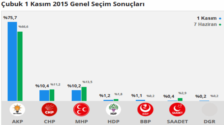 Ülke geneli 1 Kasım 2015 genel seçim sonuçlarında Ankara 2. Bölgeden seçime giren Çubuk tarihi bir skora imza attı.