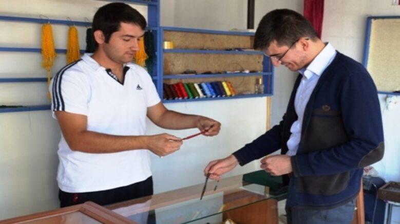 Tespih sanatının çok eskilere dayandığını belirten 23 yaşındaki İsmail Çoban, Adnan Menderes bulvarı üzerinde kurduğu küçük atölyesinde değerli objelerden el emeği göz nuru işleyerek tespihe dönüştürüyor.