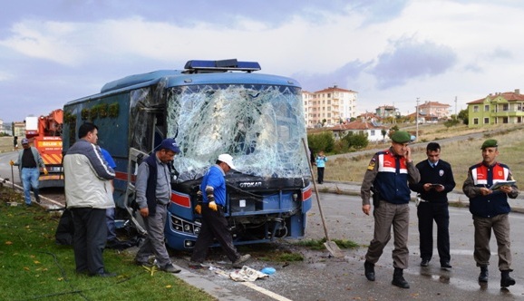 Cezaevi aracının devrilmesi sonucu 1 sivil şoför ve 3 asker yaralandı.