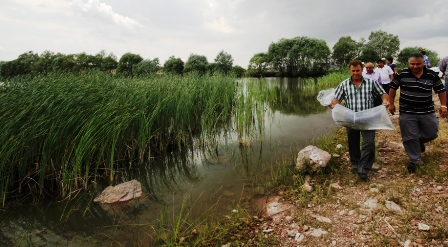 Çubuk ilçesinde bulunan göletlere 21 bin adet balık yavrusu bırakıldı.